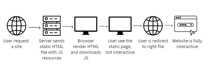 CSRIn the browser after JS loadsFlexible UI; slower first paint, heavier JS, SEO depends on JS execution