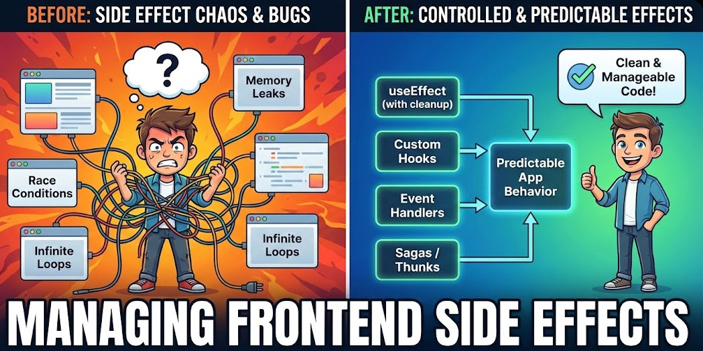Frontend side effects—API calls, subscriptions, timers, analytics—can turn a clean UI into spaghetti without clear boundaries. This guide covers practical patterns: organizing effects with useEffect and lifecycle hooks, separating them via service layers and use cases, and scaling with Feature-Sliced Design so effects stay isolated, testable, and maintainable.