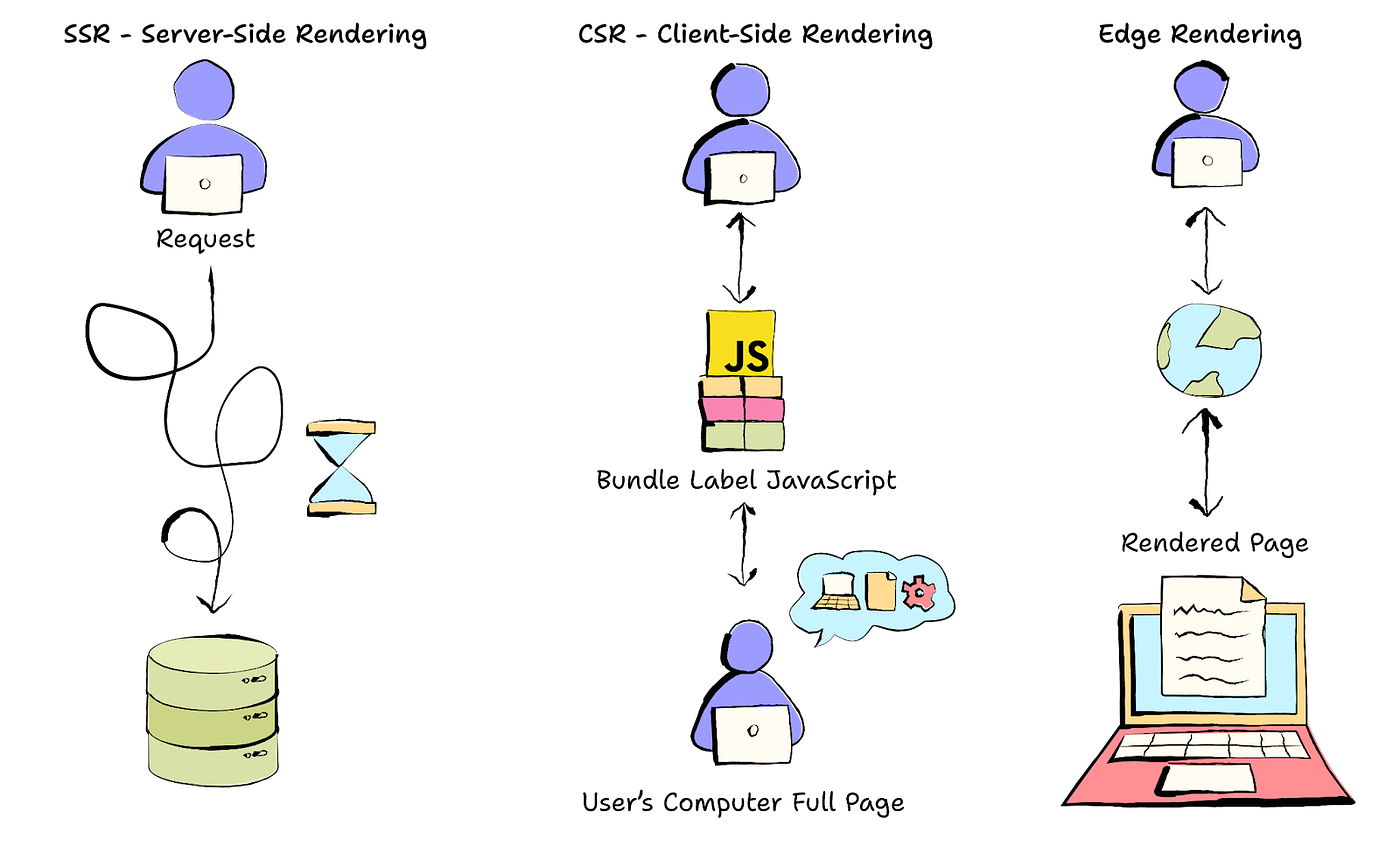 To understand the value of edge rendering, it is useful to compare it with two familiar approaches: traditional server-side rendering and serverless functions.